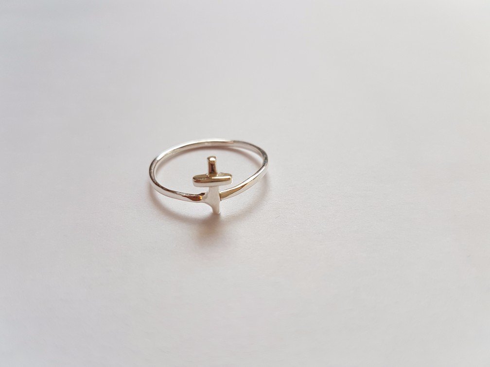 Anillo Mini Cross de Plata - Talla 12